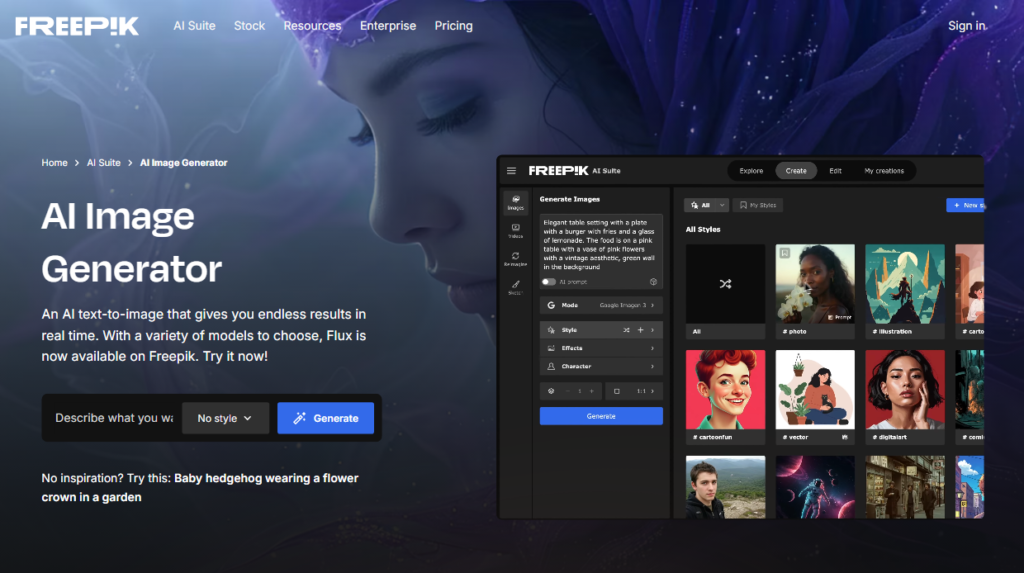 برای تولید محتوای بصری، Freepik AI کاربردی است.